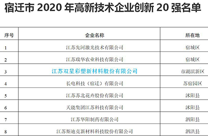 Good news! Double Star New Materials Ranked in Suqian's First Batch of "Top 20 High tech Enterprises for Innovation"