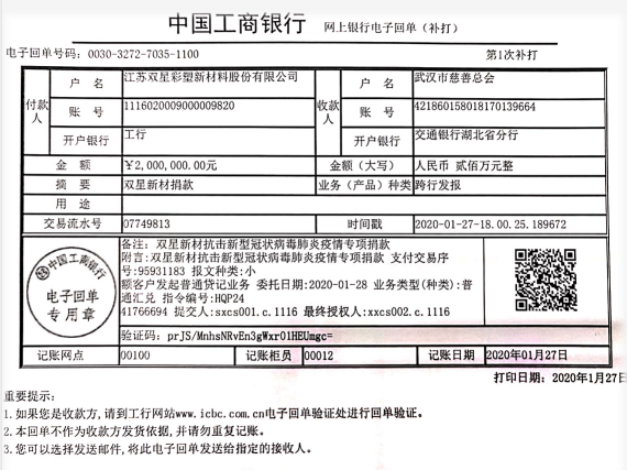Report on Special Donation of Double Star New Materials to Fight novel coronavirus Pneumonia