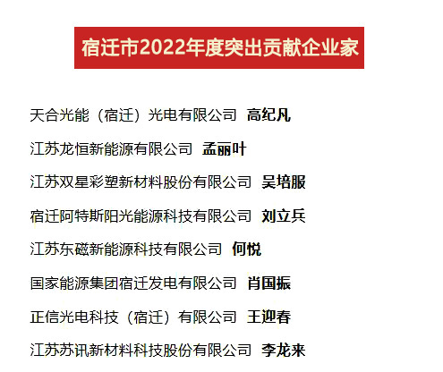 雙星新材董事長吳培服喜獲“2022年度宿遷市突出貢獻企業家”