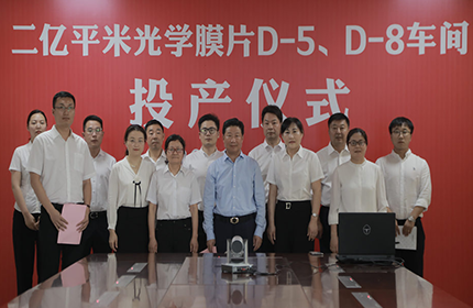 2021年6月10日上午10:38分,公司二億平米光學膜片項目D-5車間、D-8車間正式投產。本次投產的D-5、D-8車間是二億光學膜片項目重點生產車間,具備年產大尺寸光學膜片1000萬平方,高端棱鏡及復合膜片6000萬平方,該車間投入運行將使光學膜片產品結構更好、更快滿足重點客戶不斷增長的市場需求。投產運行后對落實完成公司提出的全力推進光學膜片99、666工程打下堅定基礎,為光學膜片項目營收過20億增添新動力。