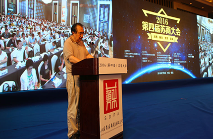 7月9日,2016(第四屆)蘇商大會在宿遷圓滿落幕,本次會議以“融合 變革 發展”為主題,旨在聚合蘇商力量,捕捉新經濟“風口”,激發江蘇民間投資活力。會議由蘇商會副會長兼秘書長俞文勤主持。中共宿遷市委書記魏國強致歡迎辭,蘇商會會長單位——沙鋼集團董事長沈彬發言,蘇商會名譽會長、省人大常委會原副主任丁解民講話。蘇商會執行會長、紅豆集團有限公司董事局聯席主席周海江帶領與會蘇商一起學習建黨95周年習近平書記重要講話。 會議當天,企業家們先后走進江蘇雙星彩塑新材料股份有限公司和三臺山森林公園,了解企業發展歷程,